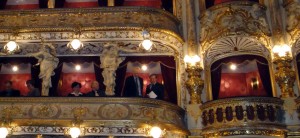We didn’t intend it but we ended up saving the best for last. Tosca was fantastic, the opera hall was magnificent and the staging, sets and seats were the best yet! We had bought the tickets while still in Hawaii so had long forgotten they were the fabled third row center seats yet again. This time center meant that the conductor was exactly 8′ in front of my seat! So close in fact that I could resist walking up front between acts and taking a picture of his score. It felt like quite an honor to be able to see it, setting on its lit podium, baton at the ready just to its right. Click the image and scroll to the side [if needed] to see it all, I thought it was way cool -to use a particularly non-opera-like phrase… What the picture didn’t really capture well enough were his margin notes and like, also way cool!