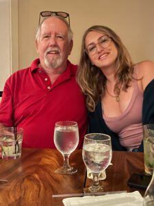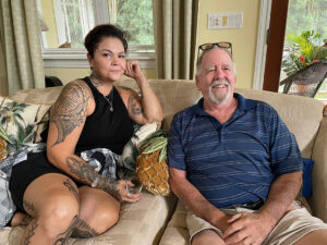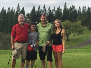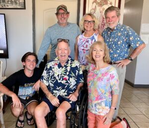 I wanted to give a special aloha and mahalo to Dad’s Ohana here on Maui – all of you here today and also the others that couldn’t make it. You have truly been his family for the last 50 years – Cynthia, Tom, Hana whom you will hear from in a bit and all his close friends. When my Dad became ill with Lewy Body Dementia – it hit him hard, suddenly and out of the blue – and for quite some time we didn’t really know what it was, and as we figured it out and as he deteriorated – you really showed up for him with your constant visits, check-ins and support. It was during this time that I really saw how he was loved by his community and it meant alot to our family.